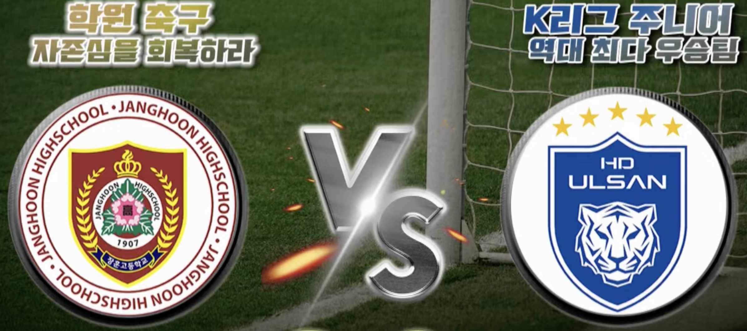 굵은 빚줄기와 함께 무겁고 칙칙한 날씨속에, 이 청년들의 꿈과 희망이 교차될 순간이 얼마 남지 않았음을 느낄 수 밖에 없게 만드는 헤더 결승골을 현대고 센터백 김기준4이 터트린다.
